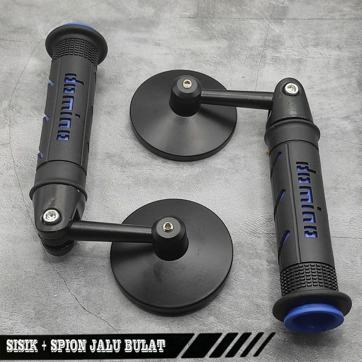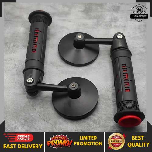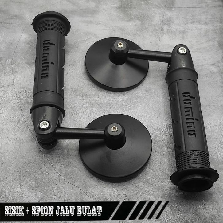 Promo Paket Spion Jalu Bulat End Bar Full CNC Anti Karat + Handgrip Dominno Universal Semua Motor Beat Vario Pcx Variasi