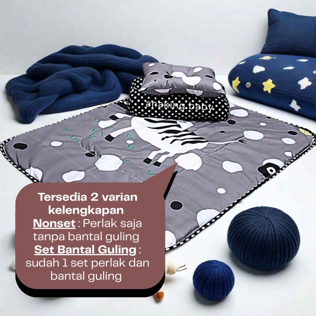 [Mall] Perlak Bayi Set 2in1 + Bantal Guling | Alas Bayi Anti Ompol | Bahan Katun CVC | Motif Animal