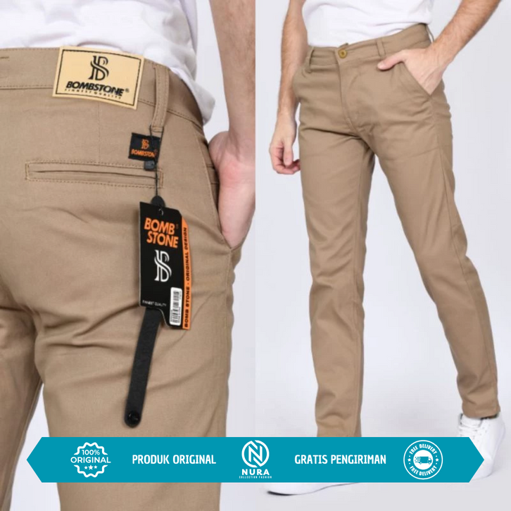Celana Chino Panjang Pria Dewasa Slimfit Motif Polos Bahan Nyaman Mid Waist Formal Casual