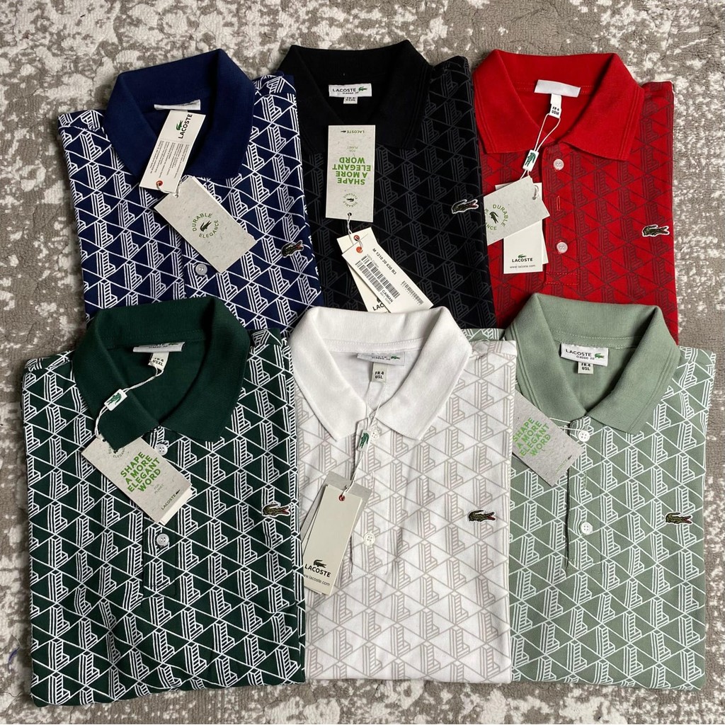 Lcst Polo Shirt Monogram Pria Wanita Atasan Kaos Kerah Regular Fit Bahan Katun Unisex