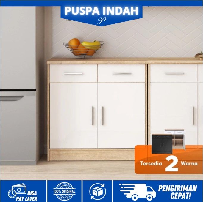 Cubic Kitchen Set 2 Pintu Minimalis / Rak Bawah Dapur / ELENA AVE KSB 2P - Putih / Hitam