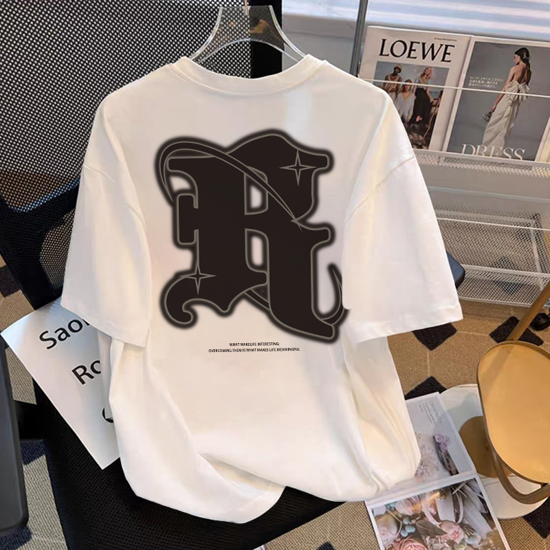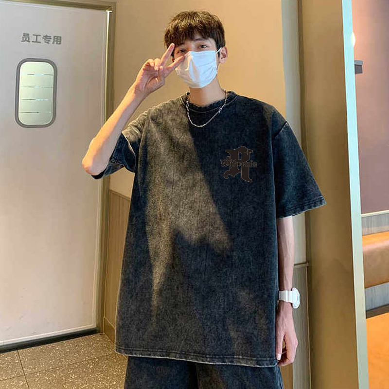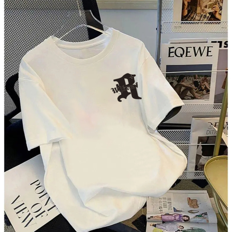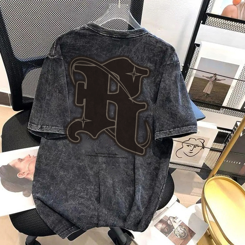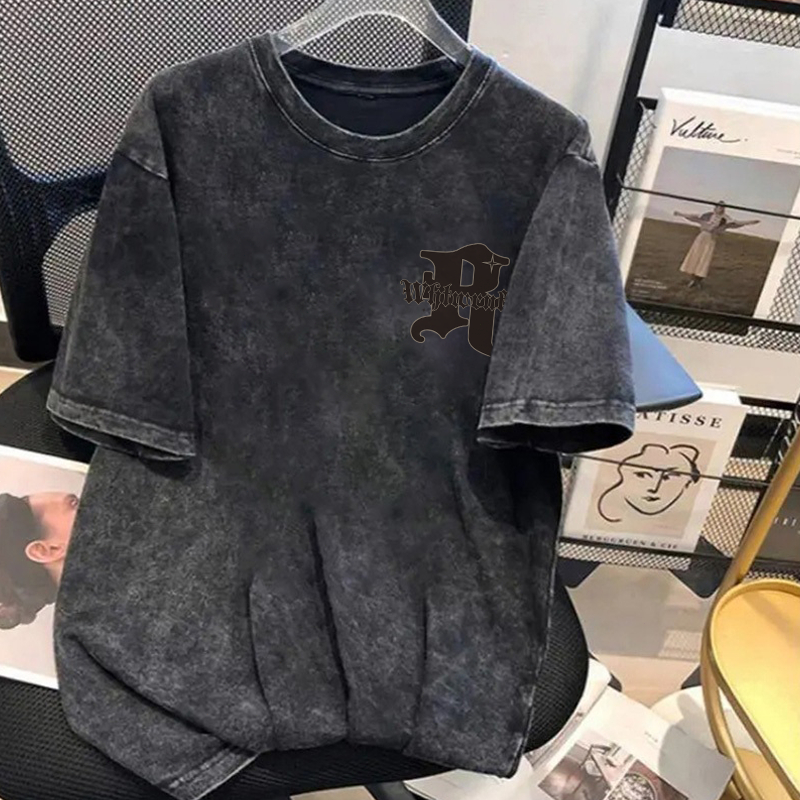 Various Washed Black baju atasan Pira korea Washed Kaos Oversize Lengan Pendek T-Shirt Cetak dengan dua huruf R