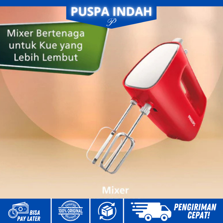 Mixer Philips - HR1552/10 - Hand Mixer - Mikser Philips - Mixer Pencampur - Mixer Kue - Merah