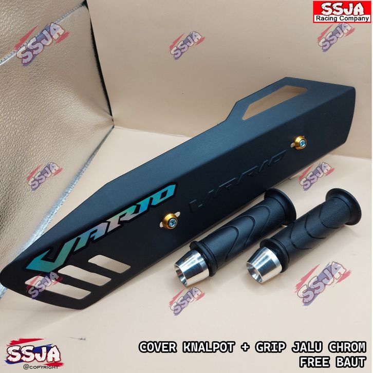 PROMO ANTI PECAH cover knalpot VARIO 125 150 bisa semua vario + handgrip jalu chrom vario bonus baut