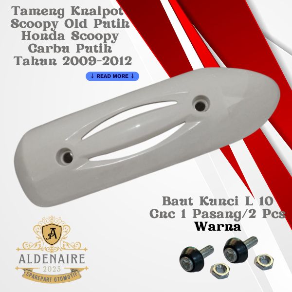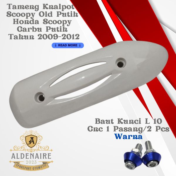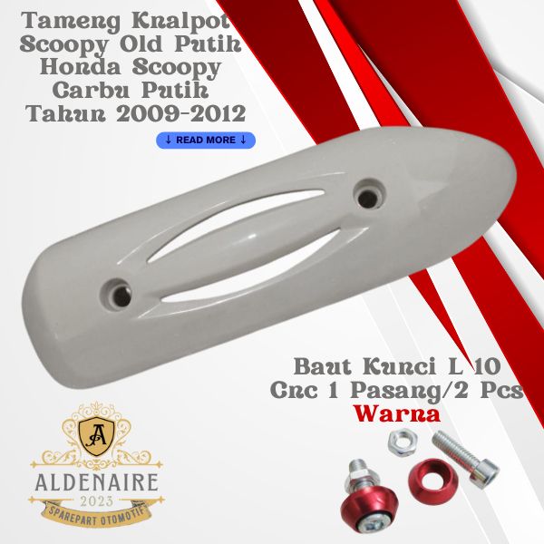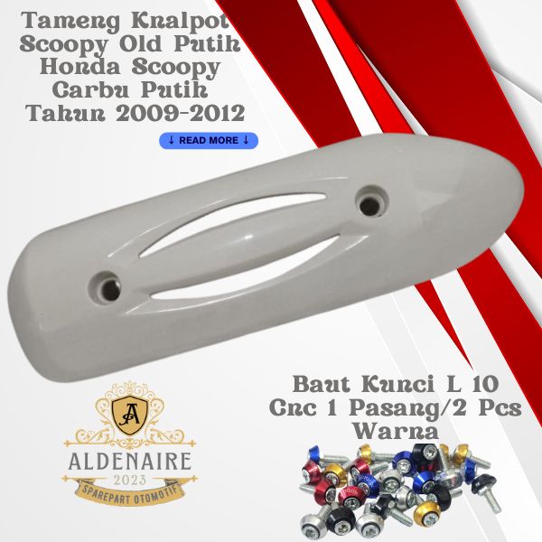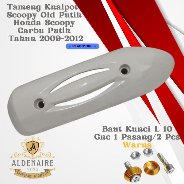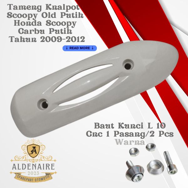 PROMO Cover Tutup Tameng Knalpot Motor Honda Scoopy Carbu Putih 2009-2012+Baut L 10 Kerucut Cnc