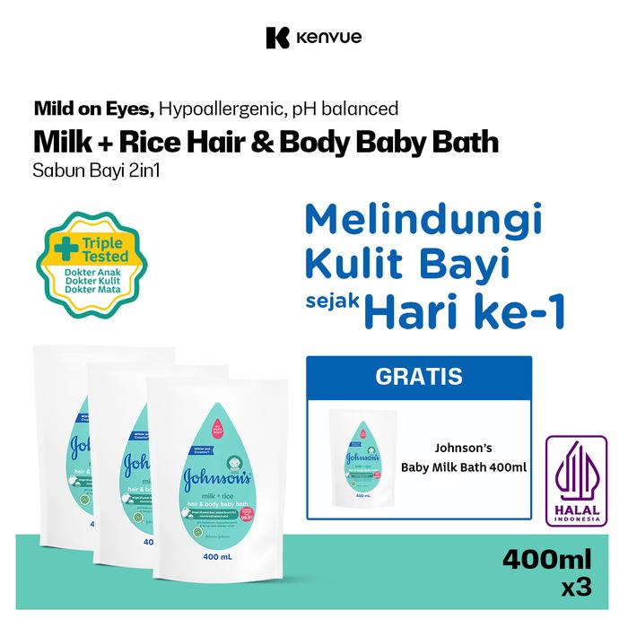 Buy 3 Get 1 JOHNSON'S Milk + Rice Hair & Body Baby Bath 400 ml Refill - Sabun Mandi Bayi Cair Newborn Melembutkan Kulit