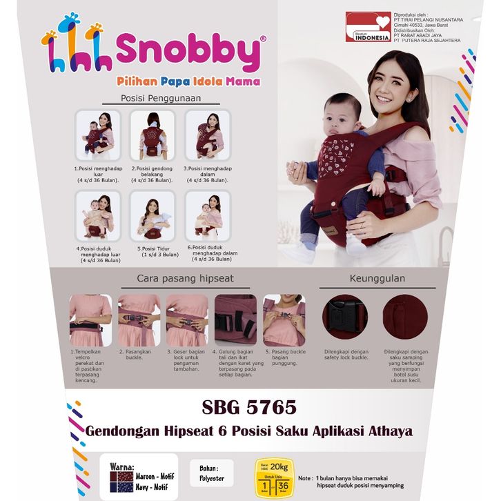 Snobby Gendongan Bayi Ransel M-Shape / Hipseat Athaya / Emily / Owl / Kavish / Heyvan Series Ready Stock