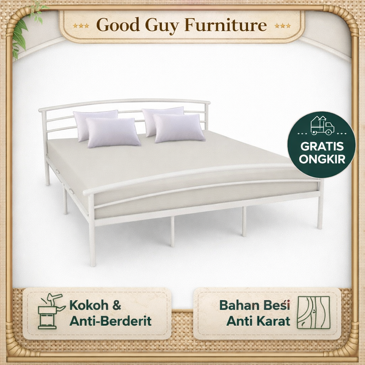 [Mall] Tempat Tidur Besi Minimalis Putih Informa | Ranjang Kuat Anti Karat Desain Modern