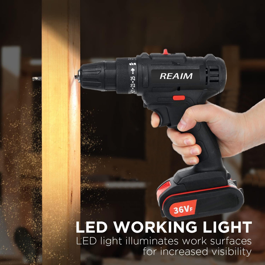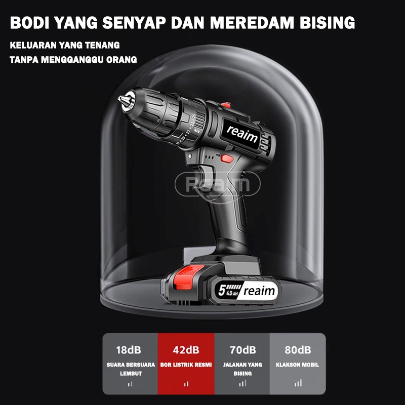 REAIM Bor Baterai Bor Listrik Isi Ulang Bor Dampak Besi Bor Dampak Besi Dinding Beton Set Beton