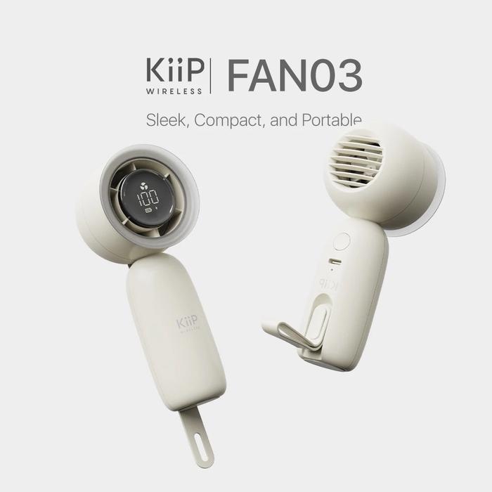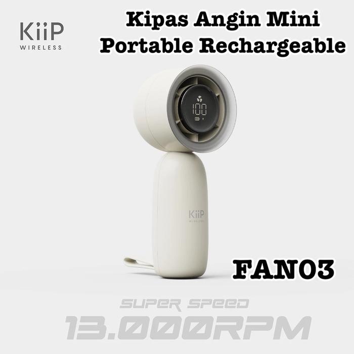 Terlaris KiiP FAN03 Kipas Angin Mini Portable Rechargeable LED Display Super Kenceng Angin - Beige Promo