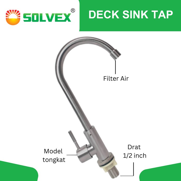 SOLVEX Kran Air SUS 304 Keran Dapur Angsa Kran Sink US-KS2001B-B