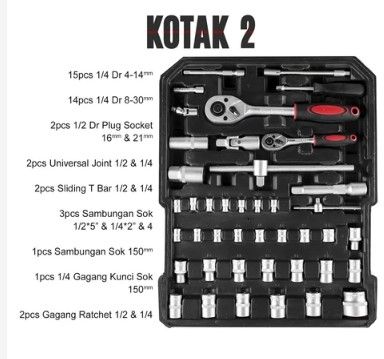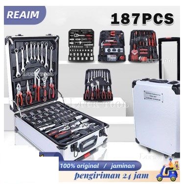 REAIM SET ALAT 1/2 1/4 INCI 187 PCS ALAT KUNCI PAS SOKET SET OBENG SET PERKAKAS BENGKEL DAN RUMAH KOPER LENGKAP BAHAN