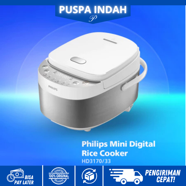 Philips Mini Digital Rice Cooker / Magicom HD3170/33 0.85 L, Penanak Nasi, Inner Pot Anti Lengket - White