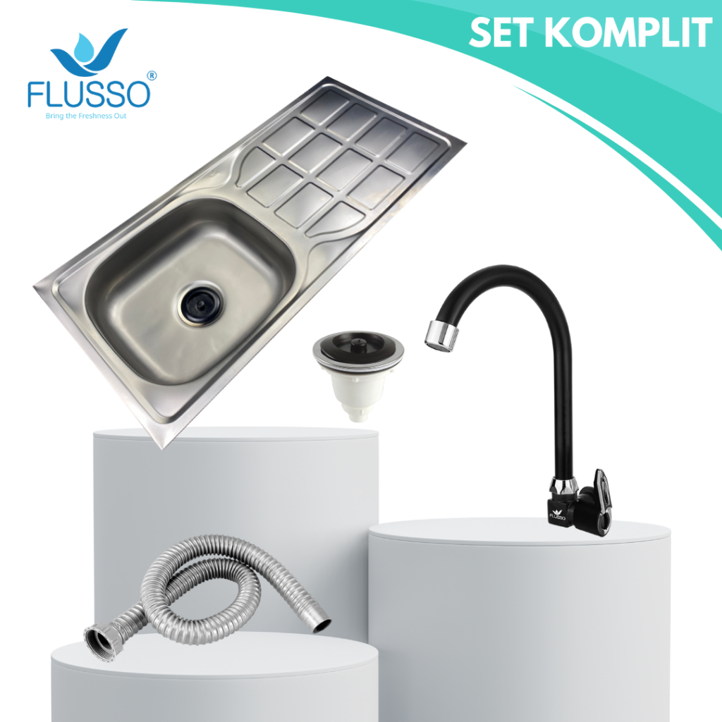 Flusso Bak Cuci Piring Stainless Ukuran 96 cm x 43 cm x14 cm 1 Lubang | 485