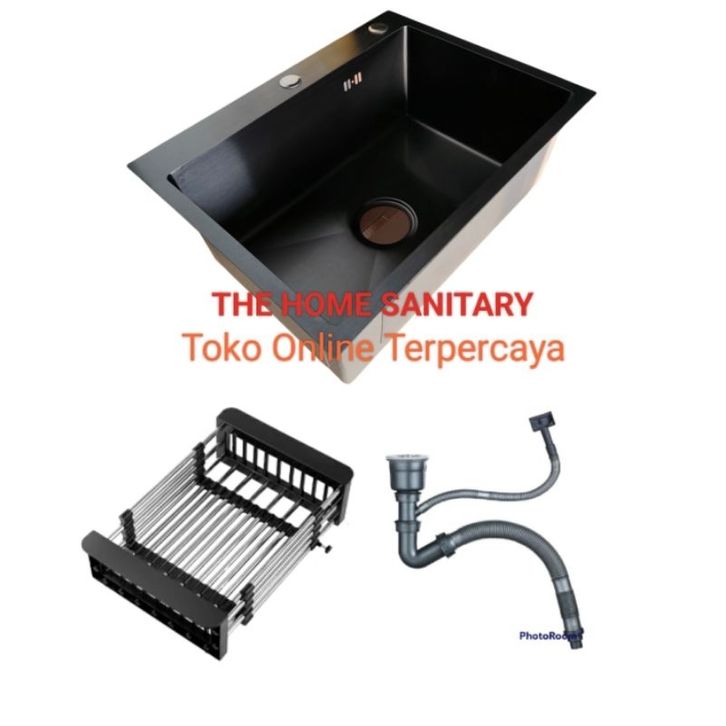 Paket Lengkap Kitchen Sink JKM 5243 BLACK Paket Kran Tarik Stainless Hitam - Bak Tempat Cuci Piring Wastafel Minimalis