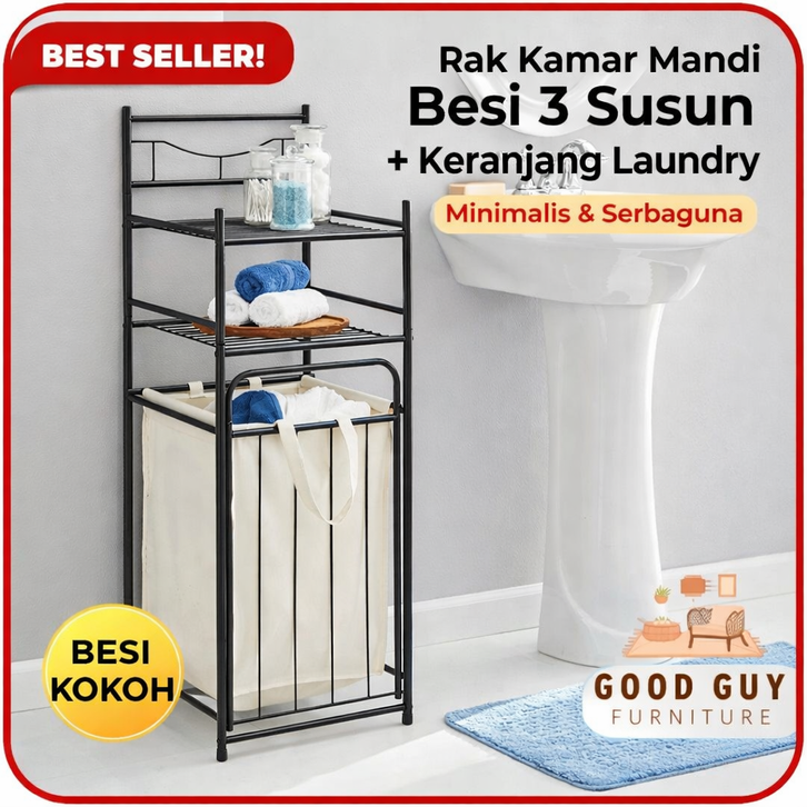 [Mall] Rak Kamar Mandi Besi Stainless 2 Tingkat + Keranjang Sudut/Pojok Laundry | Rak Handuk Serbaguna Minimalis