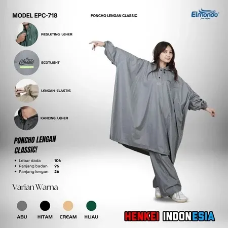 Elmondo Jas Hujan Dewasa Pria Wanita Size Fit To XL Bahan PVC Jas Hujan Jumbo Ponco