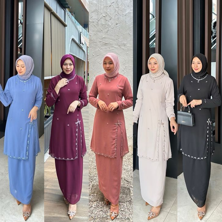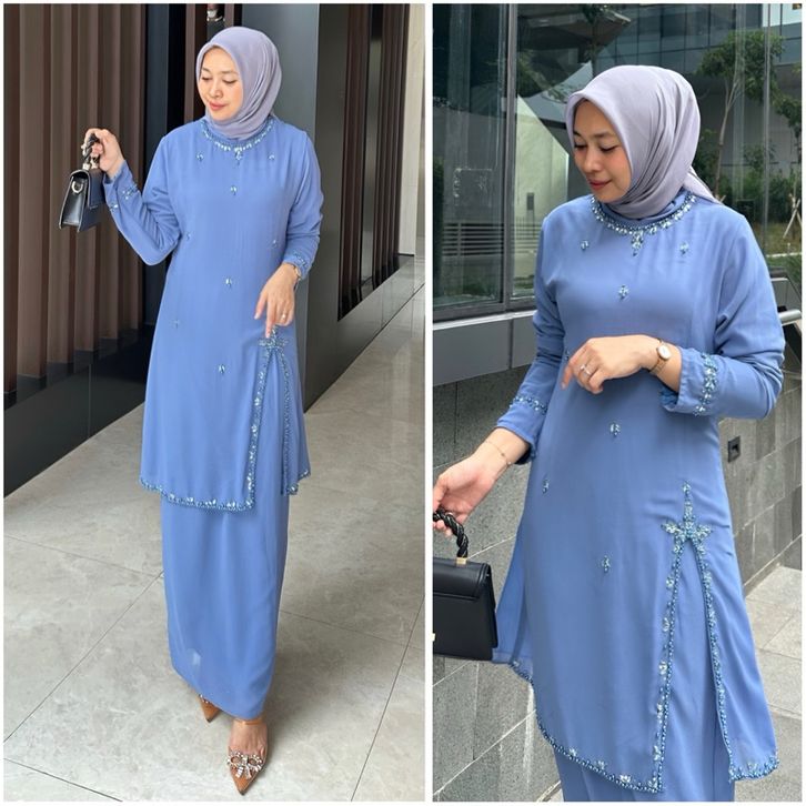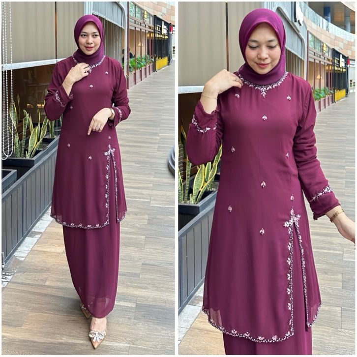 Baju Kondangan Wanita Modern Maudy Setrok Series Cantik Payet Swaroski Setelan Pesta Wanita Bahan Cerruty Armany