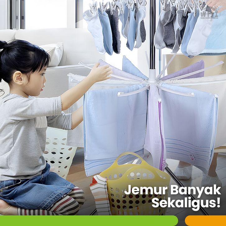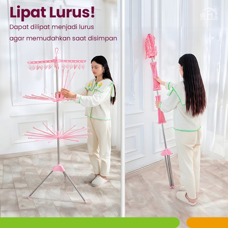 TERLARIS World Home Jemuran Gantungan Baju 3 Susun Jemuran Kaos Kaki Jemuran Portable Menara Lipat Stainless osehb