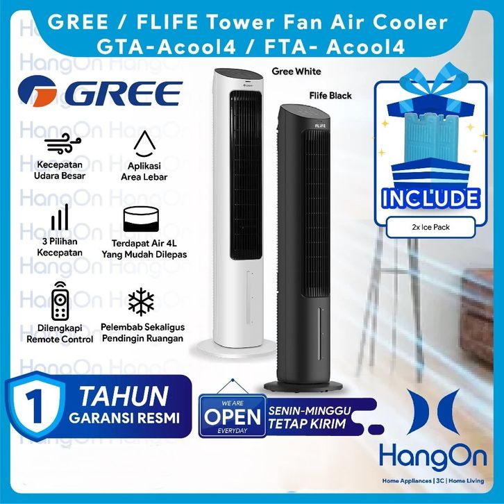 [Star] Kipas Angin GREE ACOOL4 Tower Fan Air Cooler - Kapasitas 4 Liter Model - GTA-ACOOL4 / Flife FTA-ACOOL4 / ACOOL 6