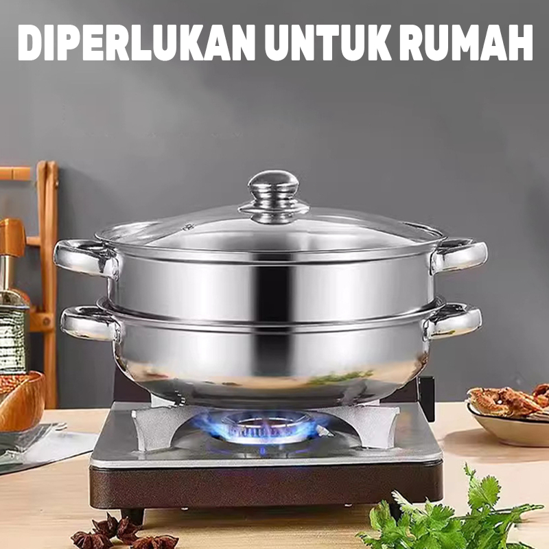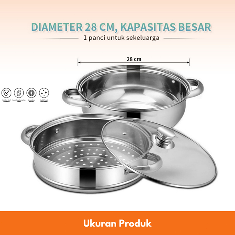 PROMO PANCI STEAMER KUKUS STAINLESS 2 TINGKAT / PANCI STEAMER / PANCI STEAMER KUKUS STAINLESS STEEL 28CM