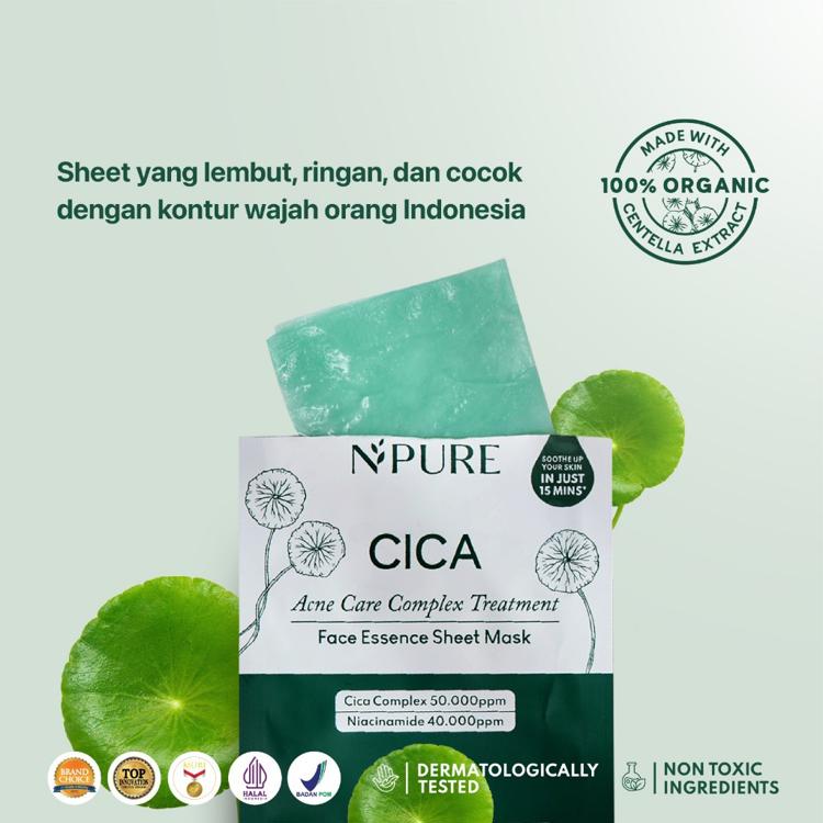 NPURE Sheet Mask Cica / Anti Acne Sheet Mask / Masker Wajah Anti Jerawat/ELSA BEAUTY/SKINCARE GLOWING/OFFICIAL STORE