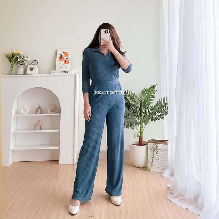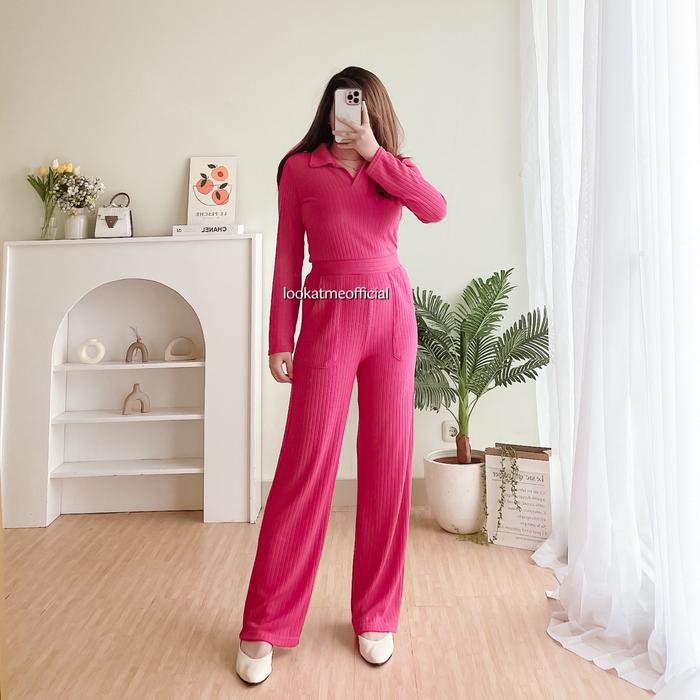 [PROMO]MALIKA SETSETELAN ATASAN DAN BAWAHAN BAHAN KNIT PREMIUM CELANA PANJANG T0P WANITA CASUAL FORMAL KULOTBROWN