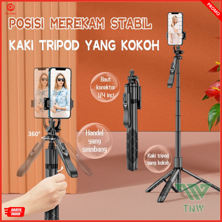 Tongsis Tripod Bluetooth Selfie Stick Remote Tripod HP Kamera DSLR Tongsis 180cm dengan 1/4 Adaptor