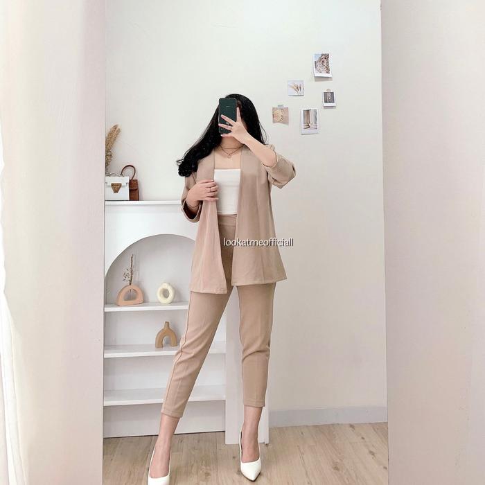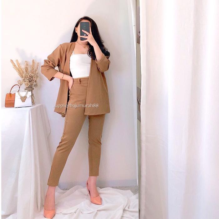 [PROMO]SETELAN BLAZER SCUBA 2IN1 AURORA SET OUTER+PANTS PREMIUM KARET PANJANG CELANA WANITA ATASAN TEBALCHOCO, AURORA