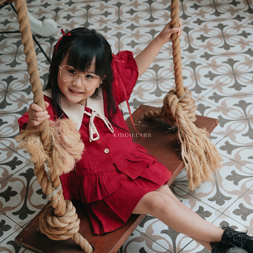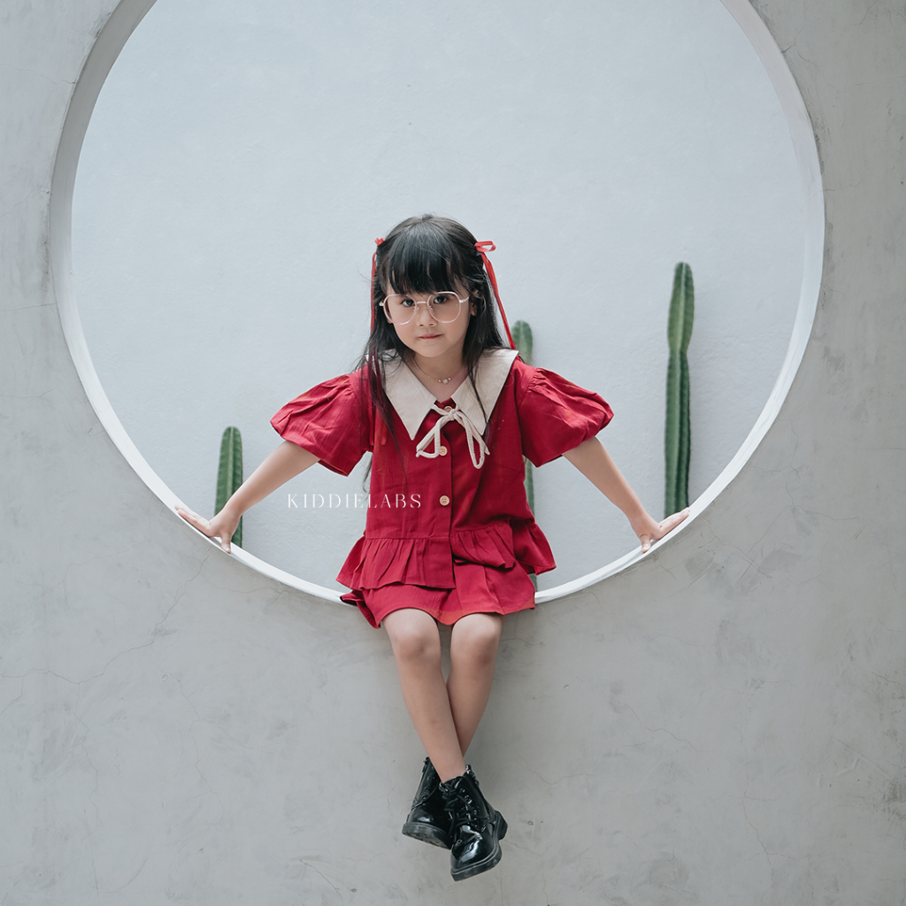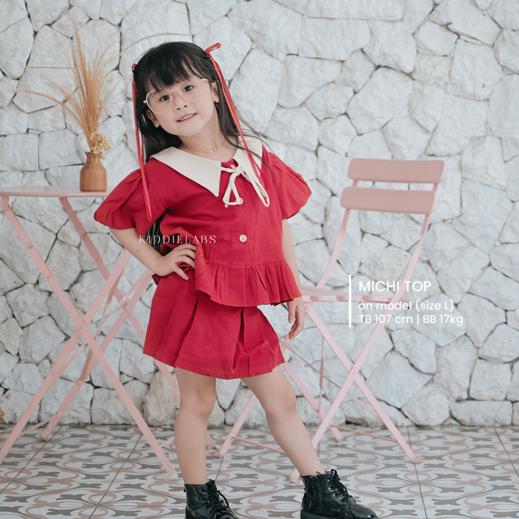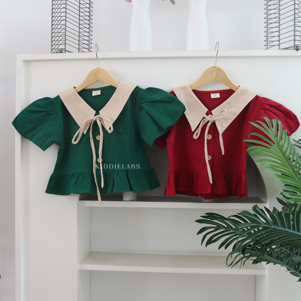 Michi Puffy Top Atasan Anak Perempuan Kemeja Anak Perempuan Atasan Lengan Balon Baju Natal Anak