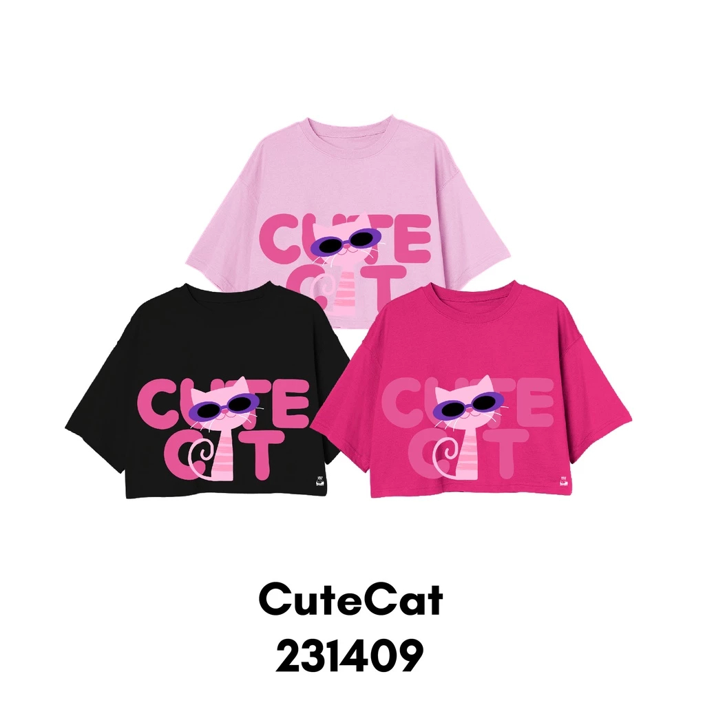 Croptop Basic Anak Perempuan Dan Wanita Dewasa Typography Series Cute Cat Holiday Bahan Katun Combed