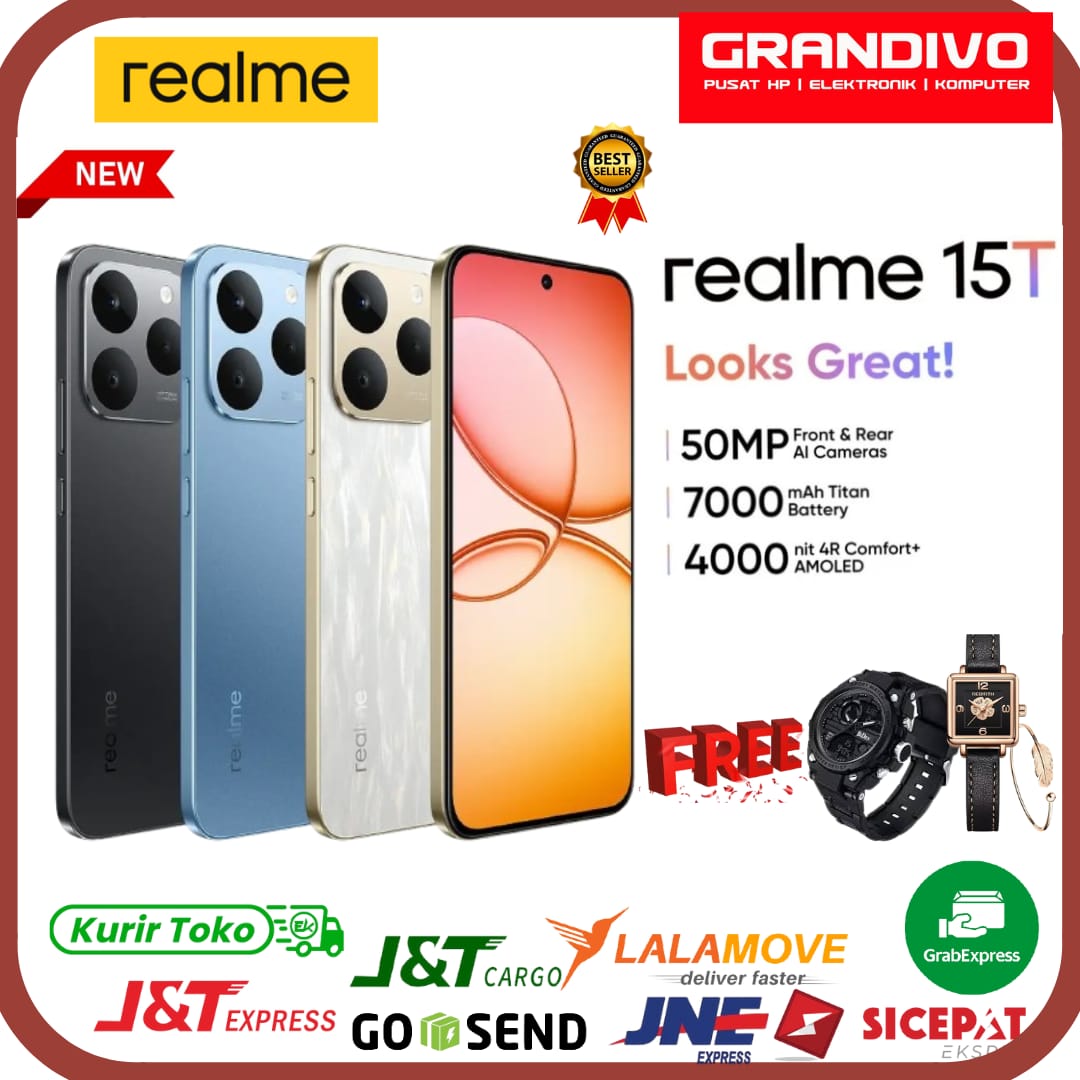 realme 15T 8GB+10GB* | 128GB 7000mAh Battery | NFC | IP66/68/69 Waterproof AMOLED Display Garansi Resmi - Grandivo