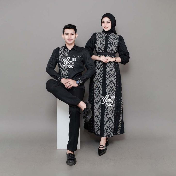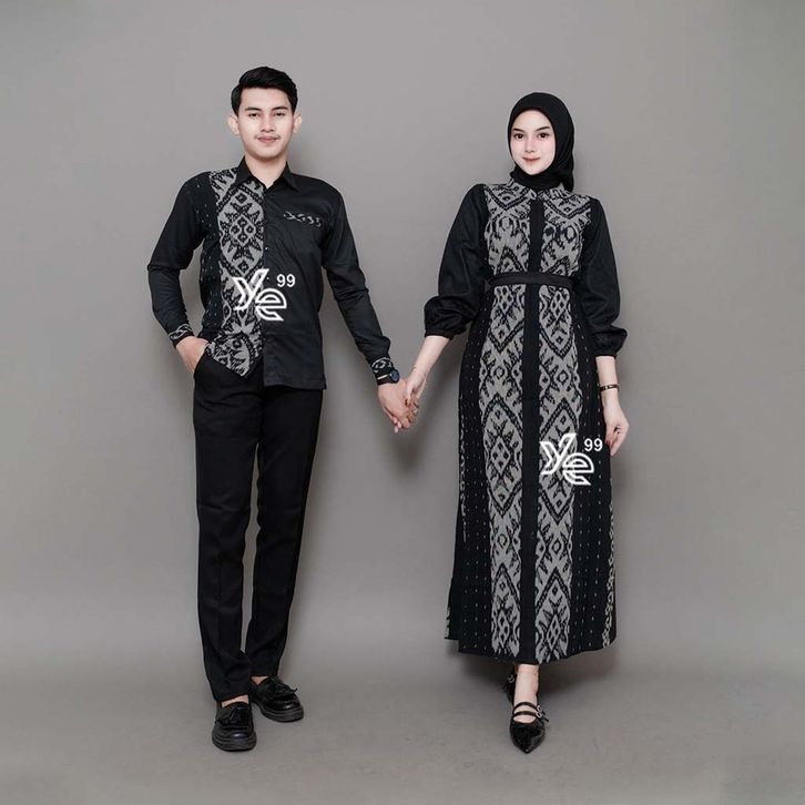Set Couple Belvia Black Couple Tenun, Belvia Dress Kondangan Ethnic, Belvia Black Couple Baju Kondangan