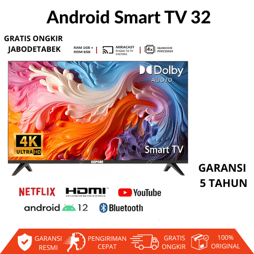 【GARANSI ORI】Smart TV 32 Inch Android TV 32/43/50 Inch 4K With Netflix/Youtube/Google/WIFI 5 Tahun Garansi