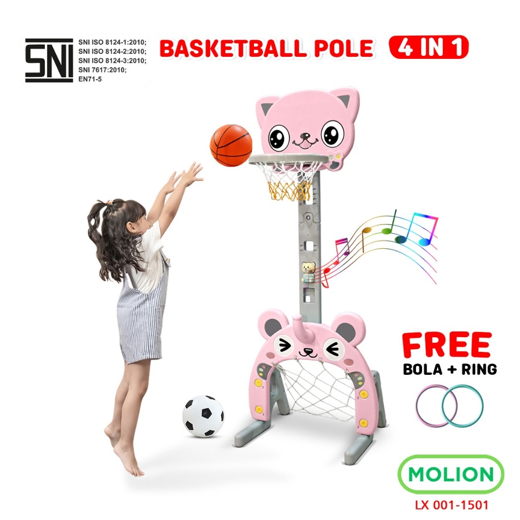 SNI Ring Basket 4in1 Multifungsi Dilengkapi Gawang Bola + Ring Ketangkasan Mainan Anak Rumah Berstandar LX 001-1501