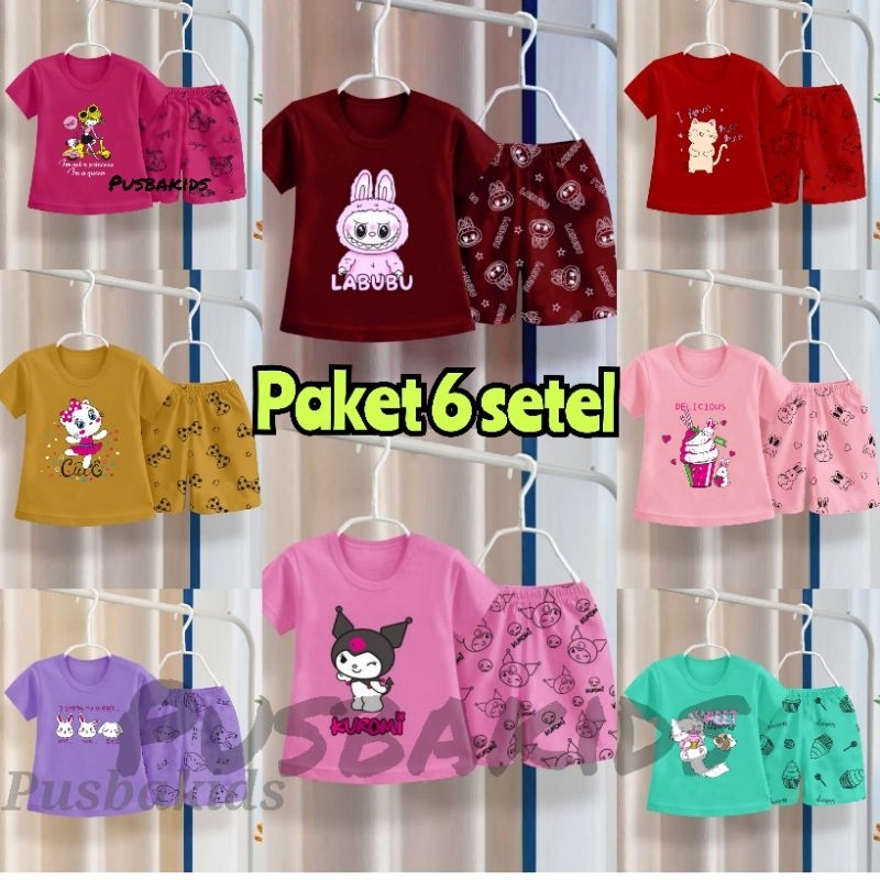 Paket isi 6 psc/Setelan anak perempuan/ Stelan anak cewek Labubu, Koromi/Paket 5 pcs kaos anak cewek/ random
