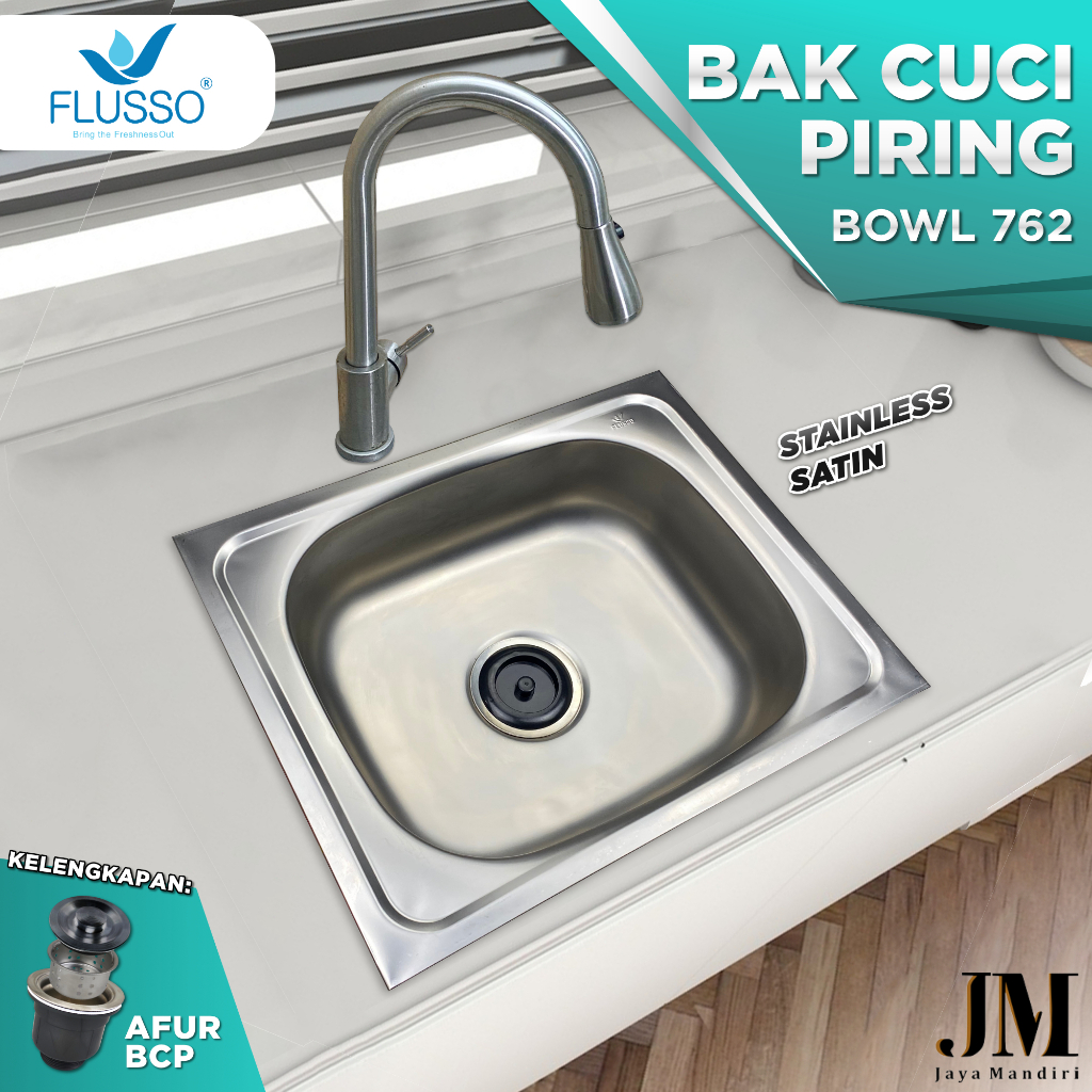 Flusso Bak Cuci Piring Kitchen Sink Stainless Ukuran 50 x 40 Sink 1 Lubang Include Afur | 762