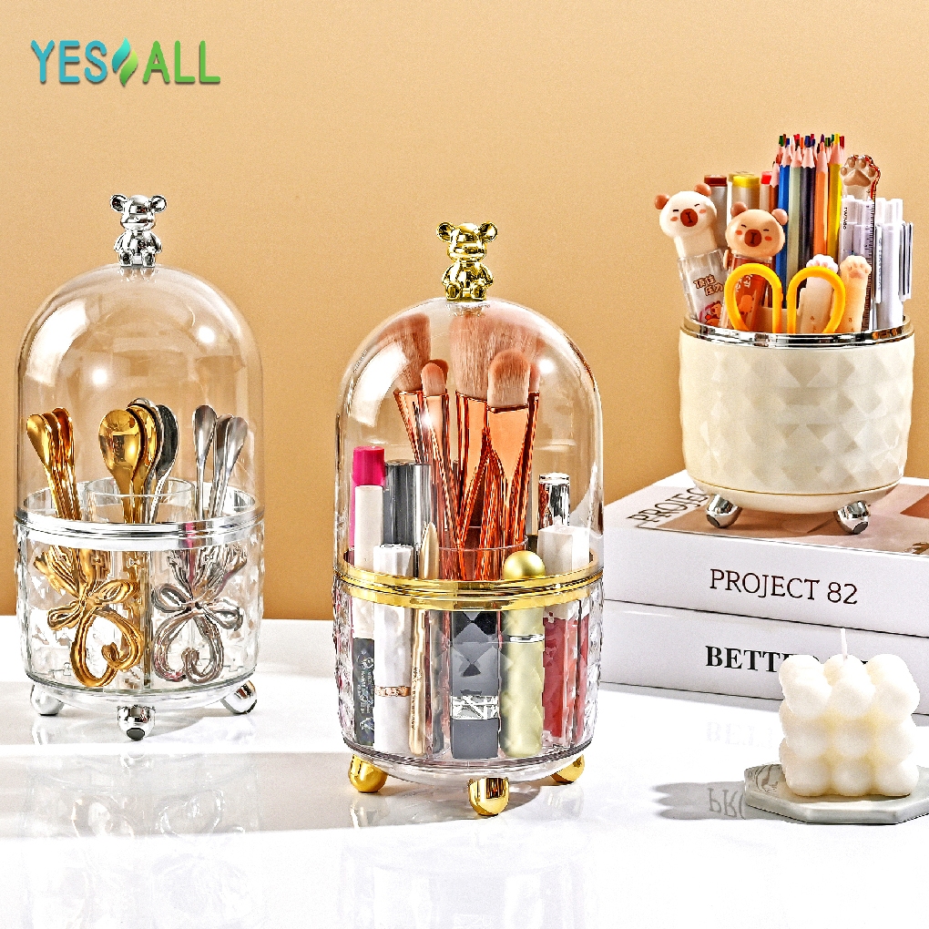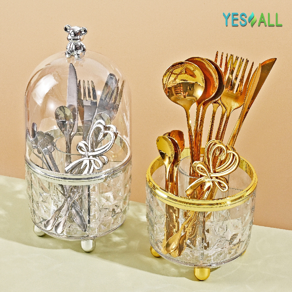 YESALL rak makeup kosmetik crystal transparan aesthetic rak kosmetik putar 360 derajat aesthetic tempat sendok garpu ter