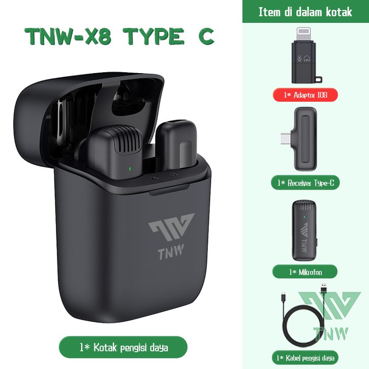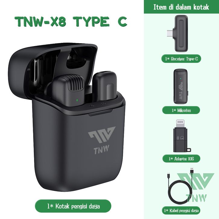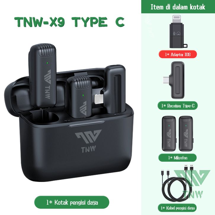 TNW-X9 Microphone Wireless Dual Lavalier Plug & Play Lapel Mic with Charging Case Mikrofon for Live Stream