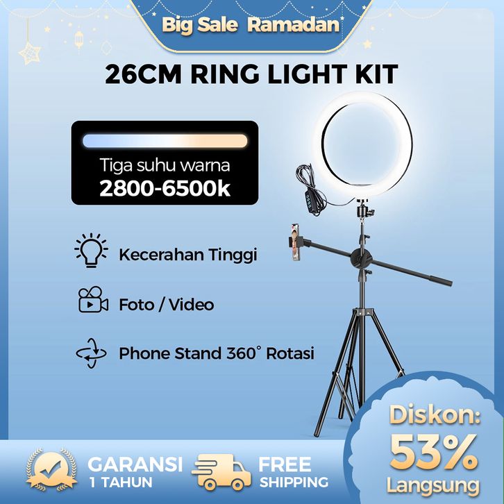 INBEX ring light 26CM konten kreator 21INBEX0CM tripod lampu70CM stand holder hp Tiga suhu warna tripod handphone konten