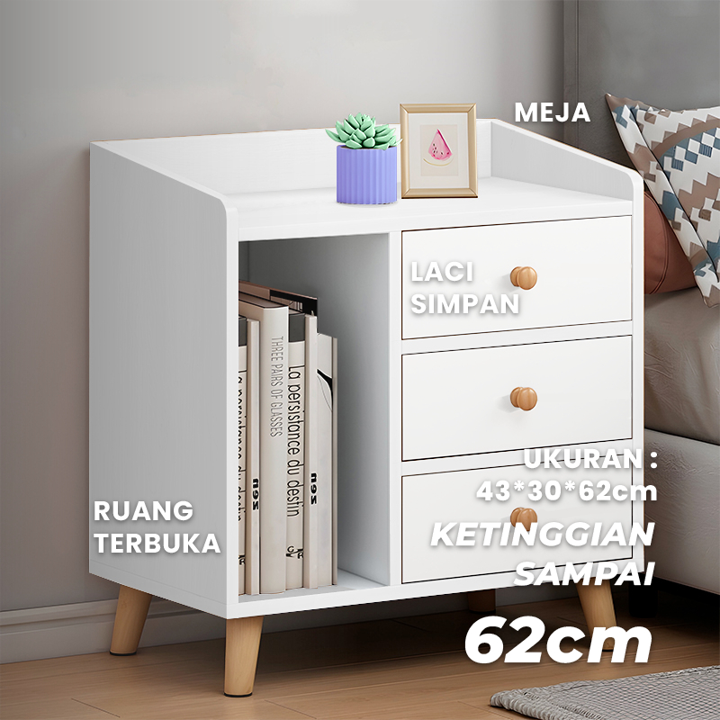 Promo Penyimpanan Multifungsi Kabinet Samping Tempat Tidur 2 Laci Kabinet Organizer Meja Kamar Nordik