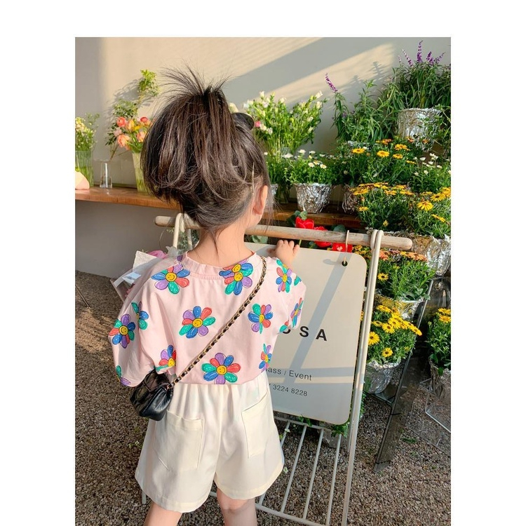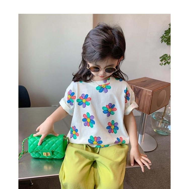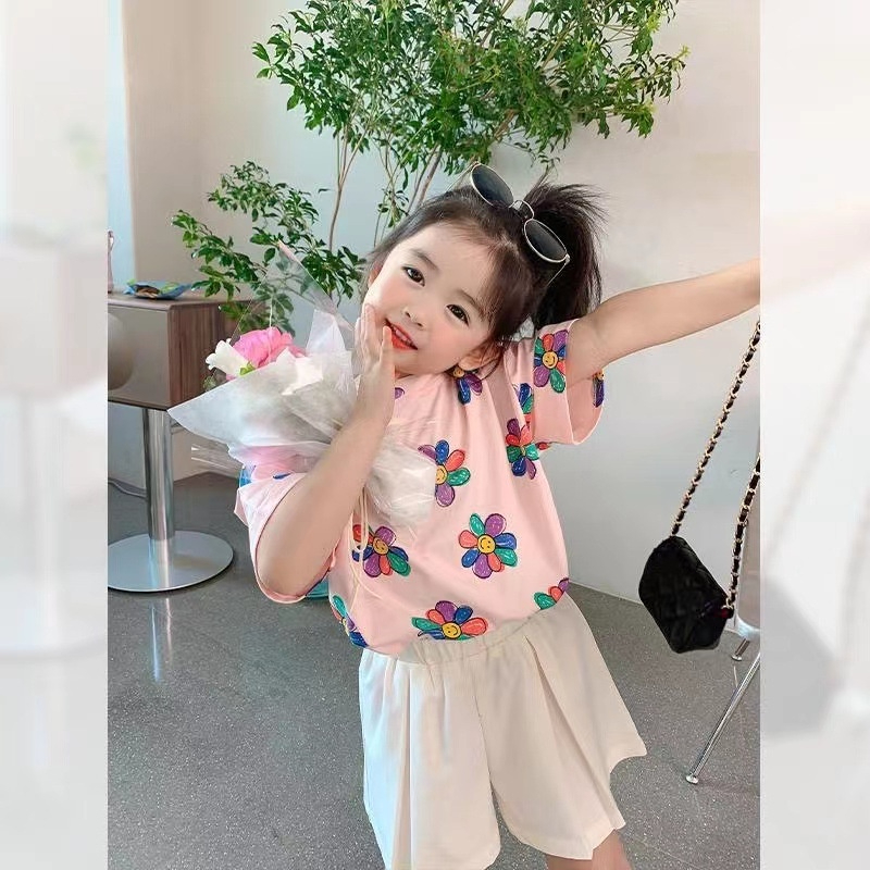Baju Anak Perempuan Atasan Lengan Pendek Motif Bunga Katun Silk Import