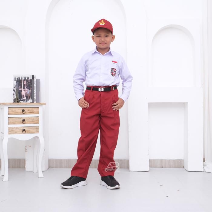 baju seragam sekolah Setelan Lengkap Seragam Sekolah Anak SD Laki-Laki Merah Putih Panjang Bahan Katun Teteron Bordir C