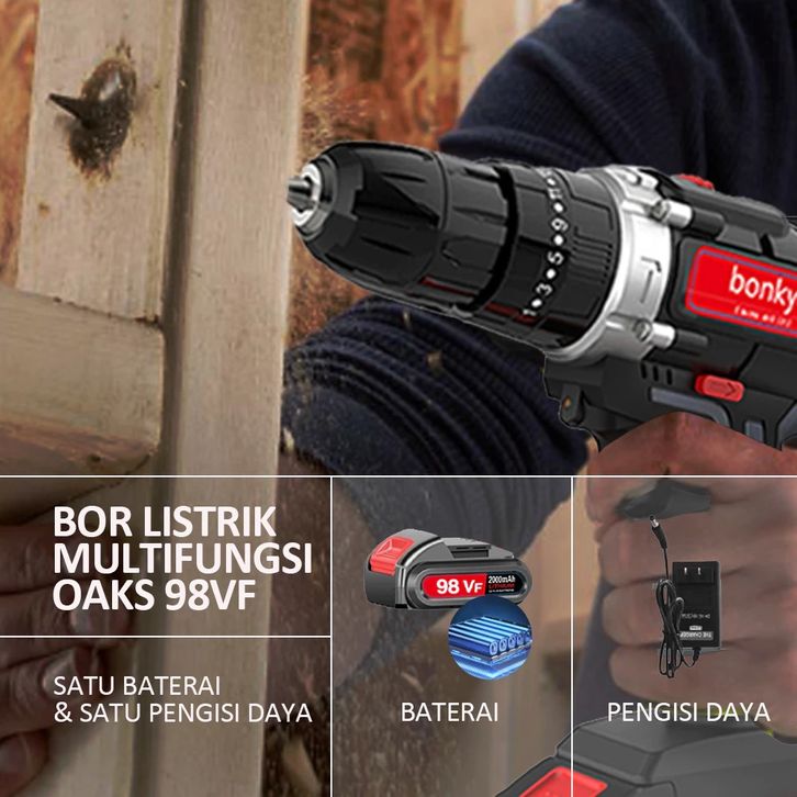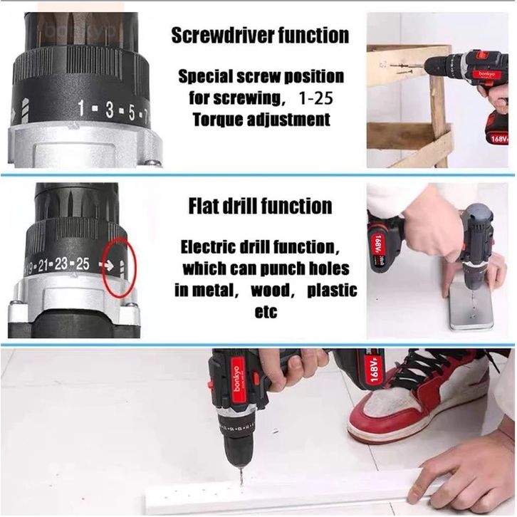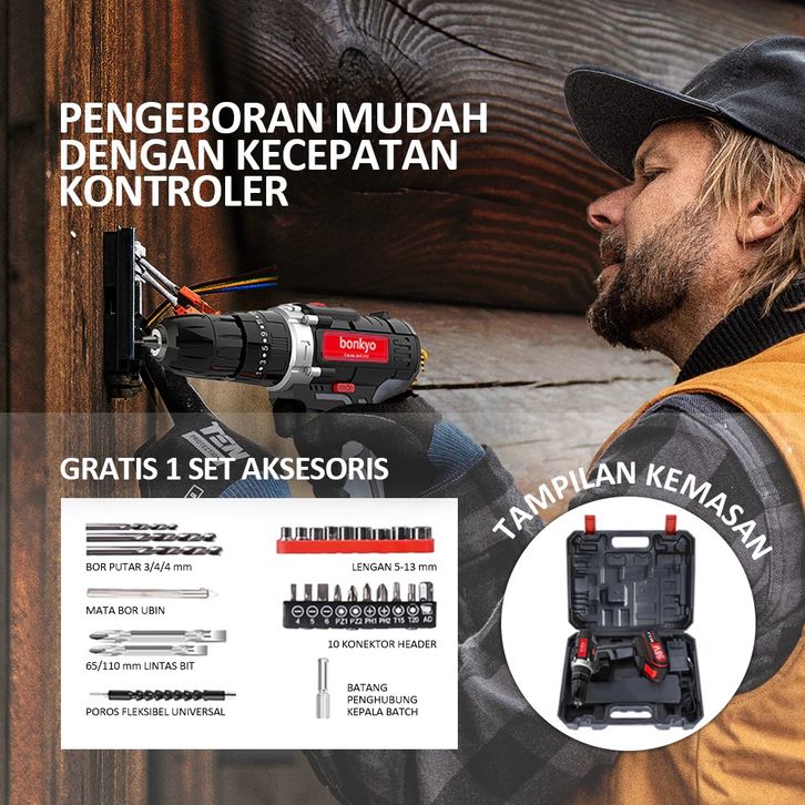 Bonkyo 168VF Mesin Bor Impact Drill / Bor baterai /Bor Listrik/Beton Besi Kayu Full Set Pilihan Bor Tanpa Kabel Bor bate
