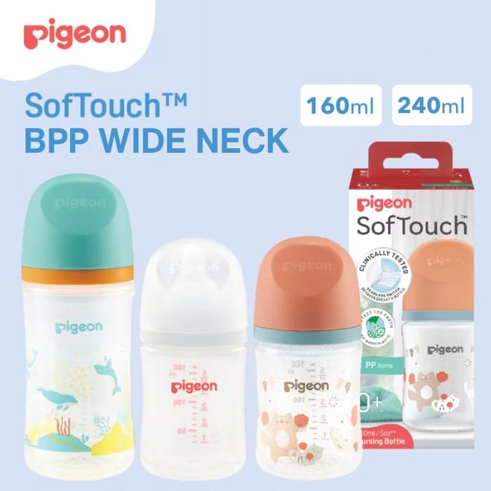 MOMS_ PIGEON Botol BPP Wide Neck / Soft Touch Nipple 160ml 240ml | WideNeck Minum Susu Bayi - CAT 160ML