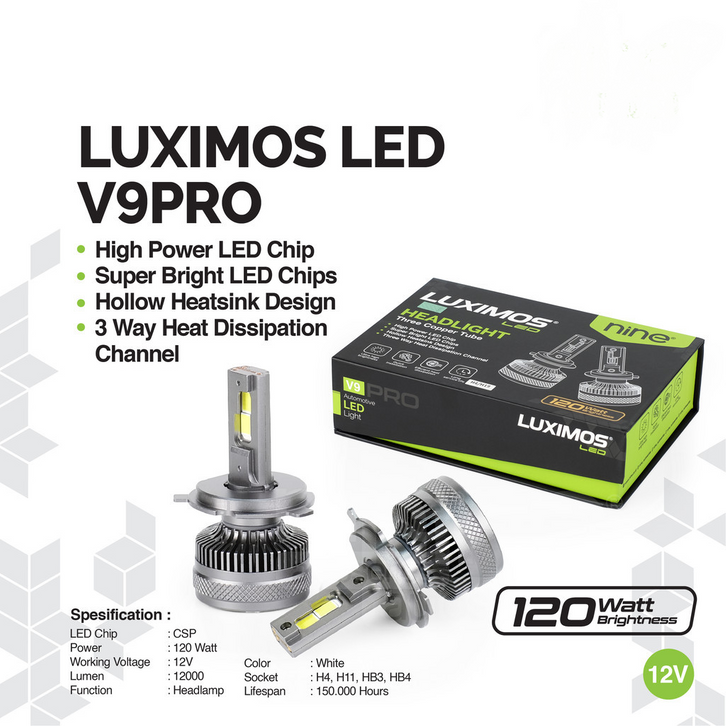 Lampu Utama Mobil 120W H4 H11 Foglamp Super Extreme Terang Putih V9 PRO - NINE AUTOSERIES