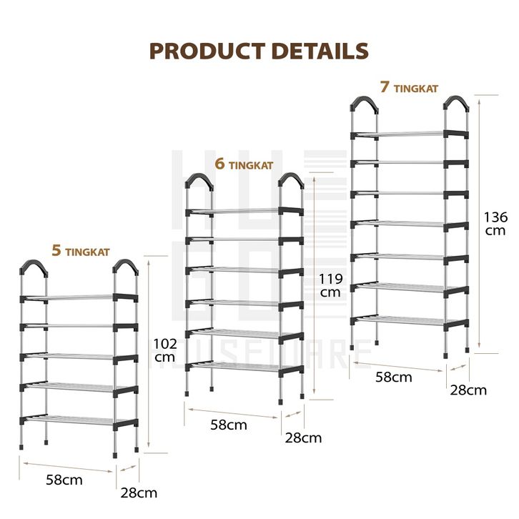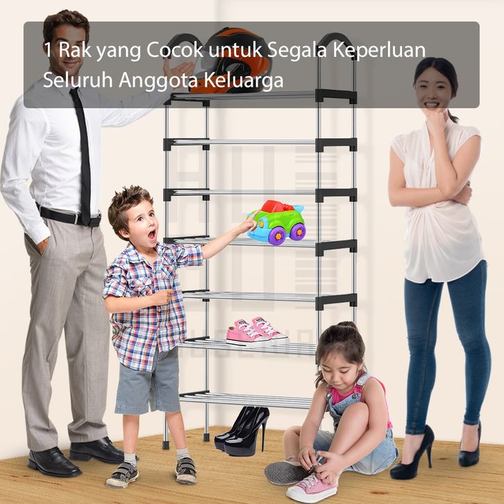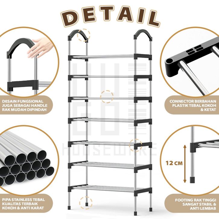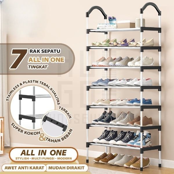 Rak Sepatu Stainless Steel Kuat Multifungsi Kapasitas Besar 5 Susun 6 Susun 7 Susun