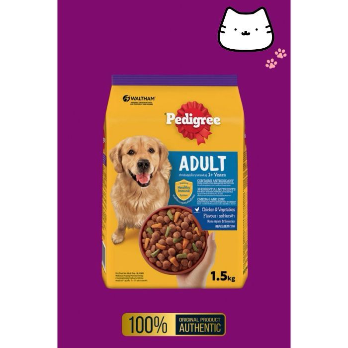FRESHPACK Pedigree Adult 1.5kg Makanan Anjing rasa Chicken & Vegetables, Beef & Vegetables terlaris,