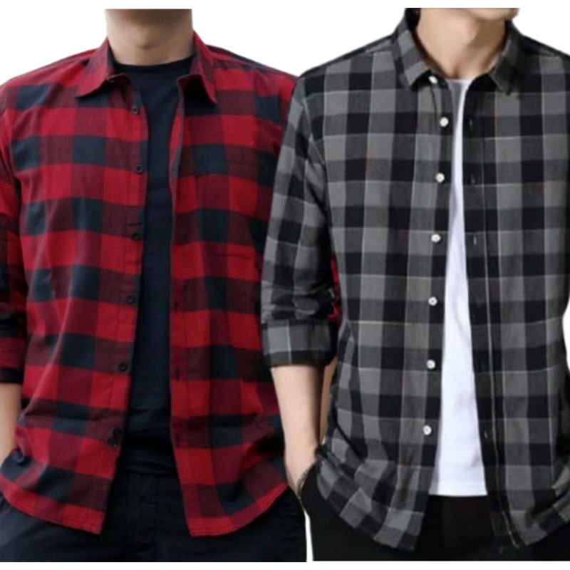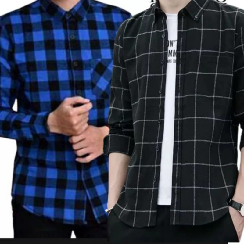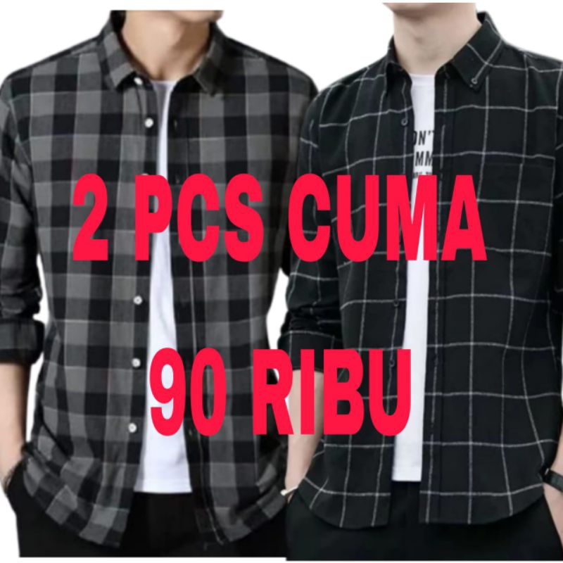 PAKET HEMAT 2 PCS CUMA 90 RIBU KEMEJA FLANEL PRIA DAN WANITA LENGAN PANJANG BAJU TERBARU
