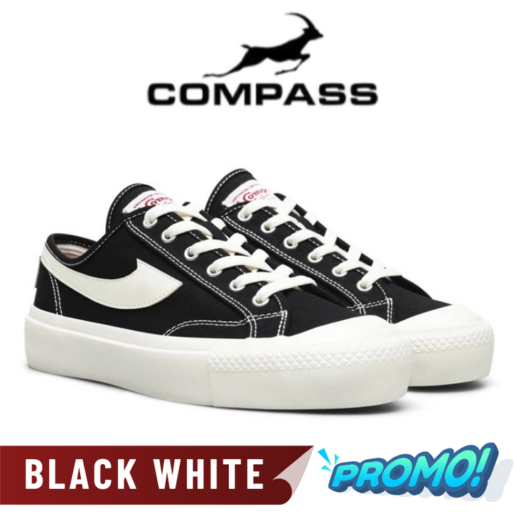 Sepatu Sneakers Pria Wanita Compass Gazelle Low Black White Original